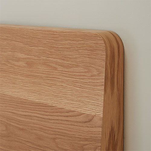 공간 속 부드러운 코너 라운드 마감과 내추럴 분위기를 살린 무늬결 천연 오크우드